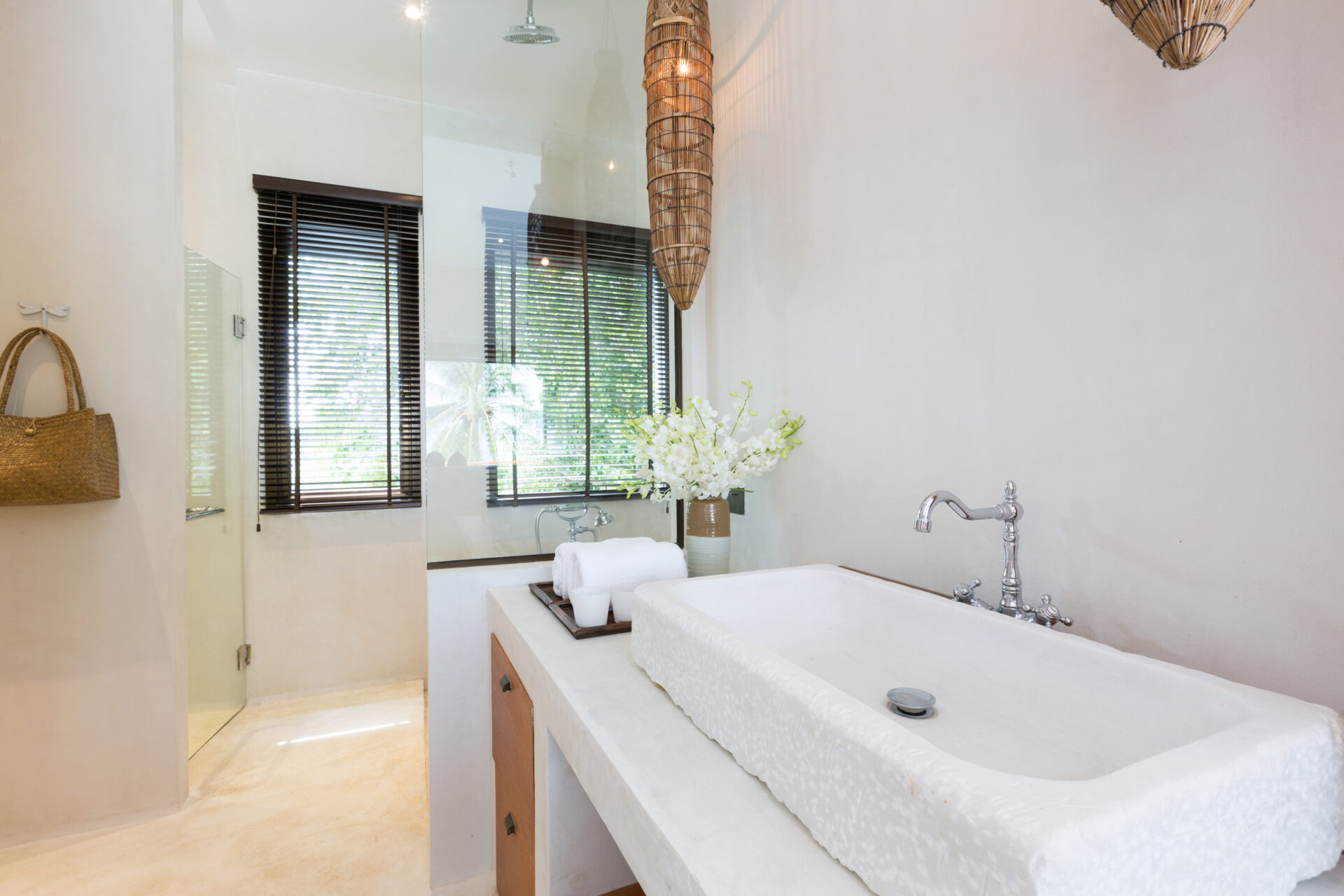 Koh Koon’s remaining six bedrooms are housed in four pavilions throughout the property. The Mountain View Villa holds two bedrooms – one with queen size bed, and the other with twin beds (not inter-leading). Each has its own en-suite bathroom, complete with double vanities and rain showers, as well as a terrace with seating and a second swimming pool.