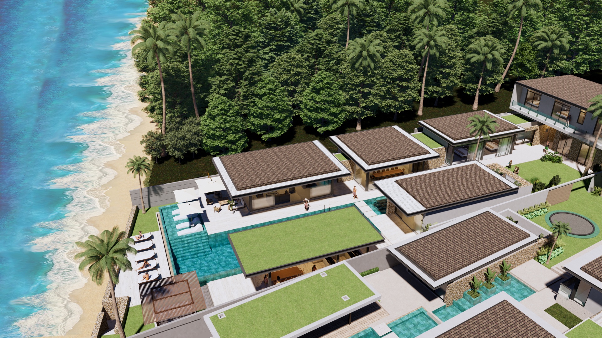Sea Clusion will be located adjacent Sea Renity on Laem Sor Beach with 25 metres of beachfront on a plot just over one rai (1,692 SQM) backed by luscious green hillsides with six bedrooms plus a kid’s bunk room sleeping six kid’s.