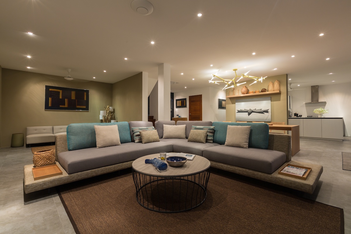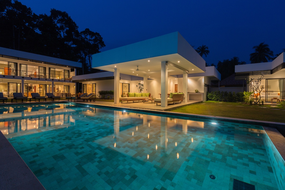 Opposite the pool is a large covered sala with plenty of sofas for relaxing on and a huge wooden dining table that is ideal for al fresco dining any time of the day or night. Close by, though walled in and discreetly hidden from view, is a Thai kitchen – separate from the main kitchen – and your personal chef can prepare every meal from breakfast, to lunch to evening barbecues from this kitchen. Beside the sala are bedrooms three and four and these again are large and tastefully decorated and adorned.